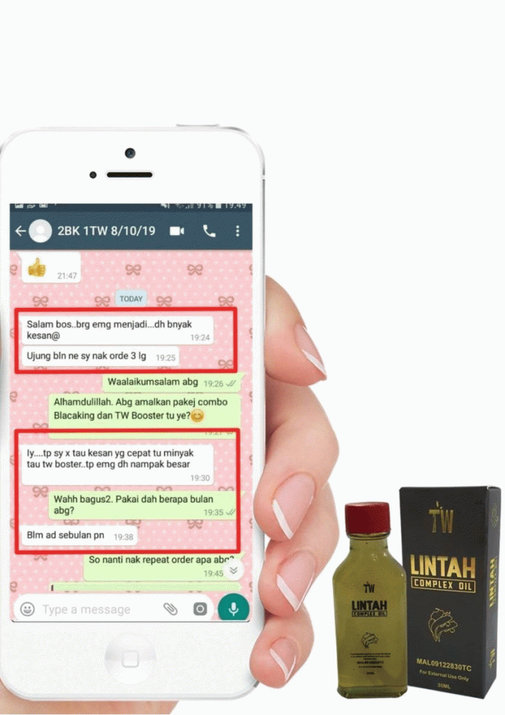 Kami sangat yakin TW LINTAH COMPLEX OIL mampu membantu anda menyelesaikan masalah performance berkurang, selepas 30 tahun dipasaran dah ramai yang kami bantu. Mungkin anda orang yang seterusnya, IKHTIAR BERUBAT ITU SUNNAH, KESEMBUHAN MILIK ALLAH .