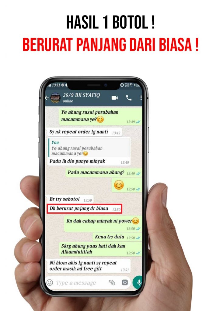 5. Boleh henti atau jarakkan penggunaan minyak ini jika sudah puas hati dengan kesan yg diperoleh.